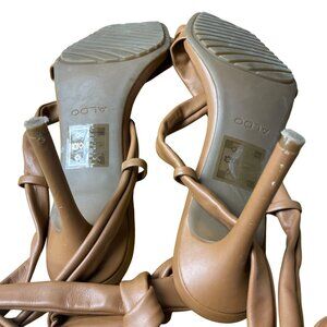 Aldo Faux Leather Square Open Toe Lace Up Stiletto Heels Brown Sz 9