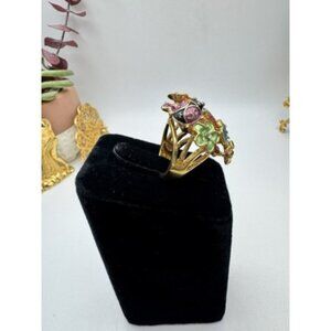 Aldo Flower Ladybug Butterfly Orange Center Stone Cluster Ring Size 6.5 Enamel
