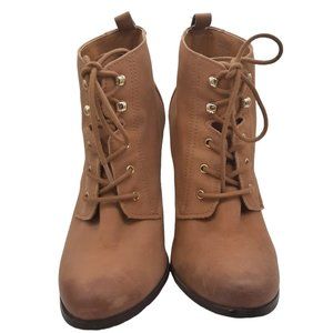 Aldo Genuine Leather Burnished Lace Up Chunky Heel Boots SZ 9