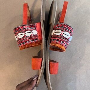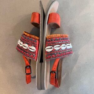 Aldo Genuine Leather Orange Beaded She’ll Summer Strappy Sandals Women’s US 8.5