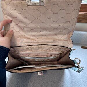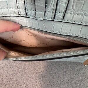 Aldo Glenda Croc Embossed Light Blue Satchel Gold Hardware Detail Shoulder Bag