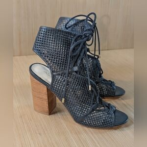 Aldo Goat Leather Lace Up Open Toe Booties/Sandals Black & Brown Size 7M