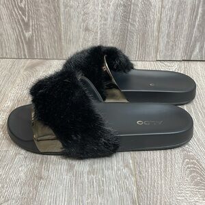 Aldo Gotta Black & Metallic Faux Fur Slide Sandal 7.5