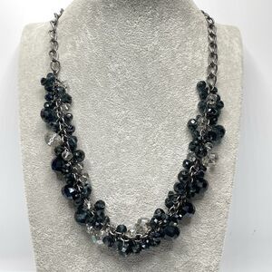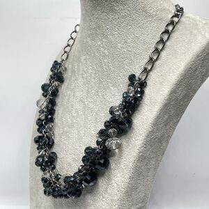 Aldo Gunmetal Dark Blue White Glass Cha Cha Beaded Necklace Boho Fashion