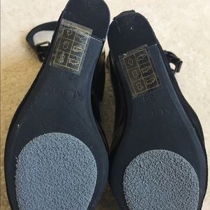 Aldo Half Suede Half Patent Pointed Toe Ankle Strap Platform Wedges in Black Size 6. Worn once. As pictured, the soles barely show signs of wear.