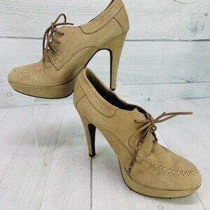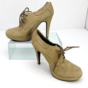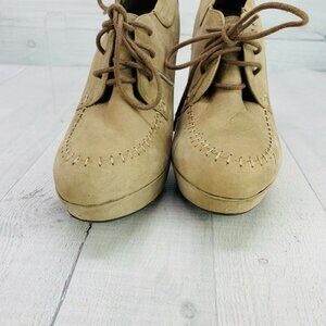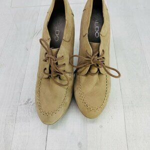 Aldo Heel Booties Lace Up Faux Suede Tan Size 37 | US 6.5