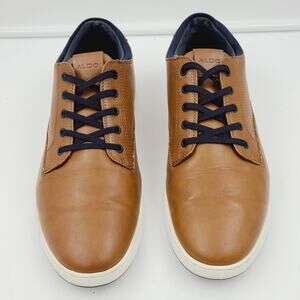 Step into comfort and classic style with Aldo's men's sneakers. These brown lace-up shoes are a versatile addition to any casual wardrobe, crafted with a faux leather outsole and a soft leather lining for day-long comfort. The solid pattern make these sneakers a great choice for a variety of occasions, from a laid-back day at the office to a weekend travel adventure.