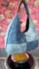 This Aldo hobo bag features a unique patchwork design in blue and white, offering a stylish and casual look. Its crescent shape and single shoulder strap with gold chain embellishments make it a comfortable and versatile accessory for everyday use. The alternating shades of blue create a visually appealing pattern, perfect for adding a touch of flair to any outfit.