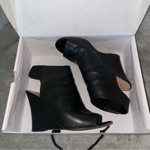 Aldo Joost Black Leather Wedge Open Toe Ankle Bootie Size 8.5