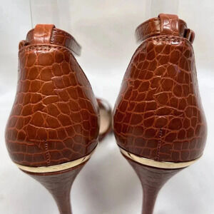 Aldo Kalanda Reptile Texture Cognac Croc Embossed Heels Size 8.5 Gold Pumps Stil