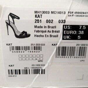 A pair of black Aldo "Kat" Strappy Stiletto Sandals, size 7.5. Brand new in box, never worn. Wedding? Dinner party? Girls' night out? These striking platform stilettos do it all (and look good with literally everything). Designed with "Pillow Walk" with dual density foam and padded insoles, this style is extra comfortable.