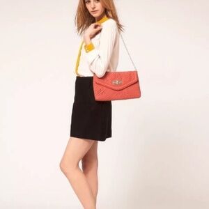 Aldo Laser Cut Coral and Gold Shoulder Bag