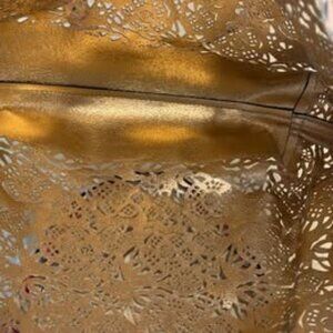 Leather handbag with cut-out design. Can be used by itself or with the inner slip-in lining.