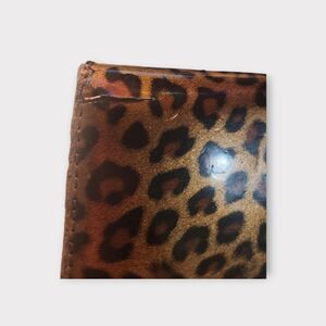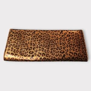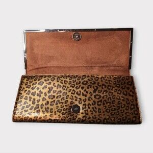 Stylish leopard print clutch. Sleek design with metallic accents. Perfect for evening outings. Does have callouts but it doesn’t take away from the beauty. Look at pictures!