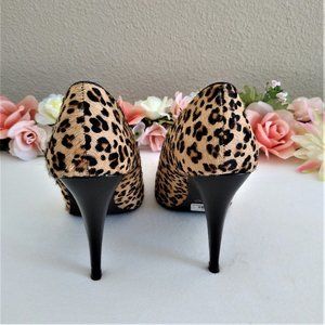 Aldo Leopard Heels, slip on style, comfortable padded insole, leather sole, sexy calf hair leopard