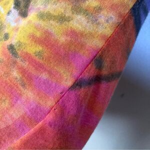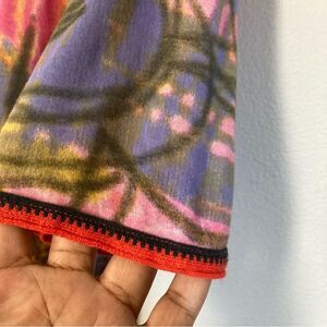 Maximalist graffiti art print top in a featherweight cotton with fine knit trim at neckline and sleeve hems. Very good preowned condition overall with two tiny snags at one side near hem (please see all photos).