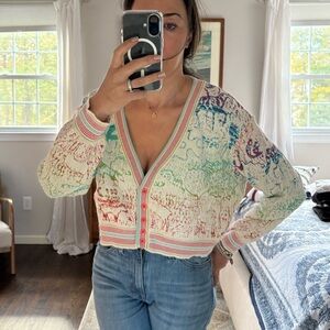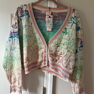 New with tags, Aldo Martins Kyoto Reversible Cardigan in Ivory Multi. Size small.