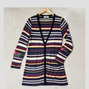 Aldo Martins Striped Cardigan Button Front VNeck Multi Color Sweater Lightweight