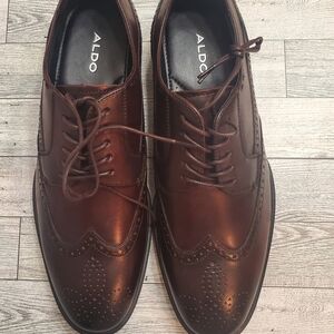 Aldo Men’s Dark Brown Leather Wingtip Fratisekflex Oxford shoe Size 8.