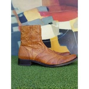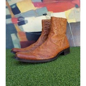 Aldo Men's Tan Leather Ankle Boots Side Zipper Square Toe - Size 12