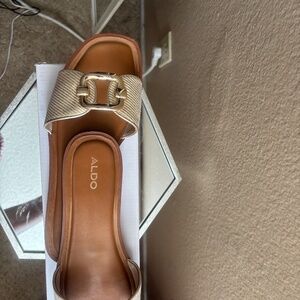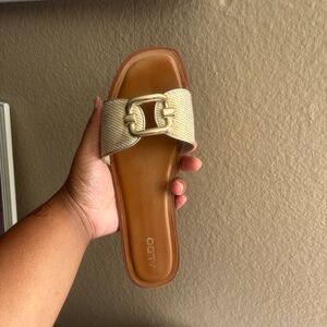 Chic Aldo slide sandals with metallic gold accents. Ideal for everyday wear. Pre owned.