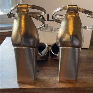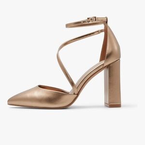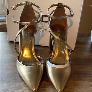 Brand new. Chic metallic gold heels with elegant straps. Perfect for elevating any outfit. Original $90