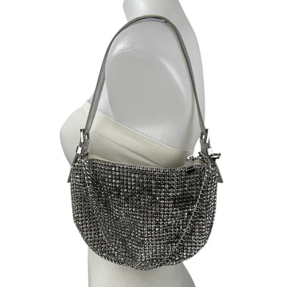 Aldo Mistera Silver Rhinestone Sparkly Shimmer Crescent Half Moon Shoulder Bag