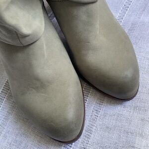 Aldo’s NWOT slouchy boots in a soft gray-green color are a great choice for year-round wear. Size 6, these boots are made from incredibly soft cow leather and feature an almond toe. The back is adorned with small buckle detailing.