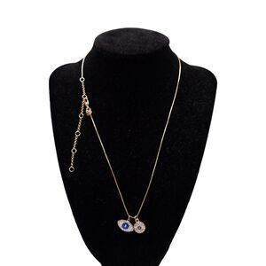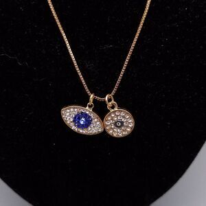 Aldo Necklace Gold Tone Double Pendant Evil Eye Rhinestones Box Chain