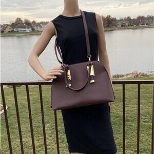 Aldo Nerine Burgundy Faux Leather Double Handle Dome Satchel Crossbody Bag
