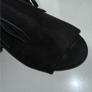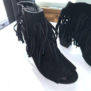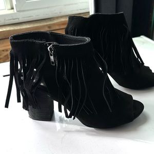 Cute little pic a boo toe with a little boho flare with fringe. They look so cute on. Wore once in great shape. 4 inch heel