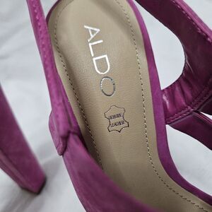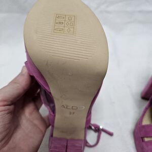 Aldo Platforms Barbie Pink Leather Suede Peep Toe Chunky Heel Buckle 6.5 EUR 37
