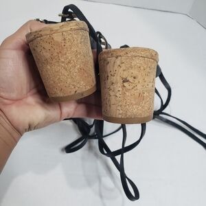 Aldo Pomeo Cork Chunky Heel Strappy Lace up Black Sandals Size 6