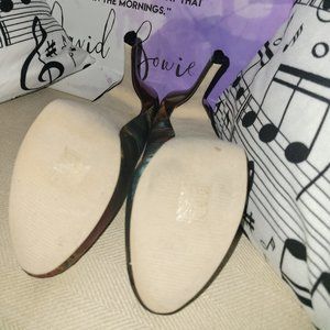 These beauties are looking for a new shoe lover to enjoy them as much as I have. Originally purchased to use in a series of eye-catching stilettos as wall decor. Heels have not worn them since purchase. They are in near-perfect condition without a box. These are beautiful shoes and a prize to any shoe collector out there. Purchase them to wear or decorate your fashion space. The detail in the satin is stunning.