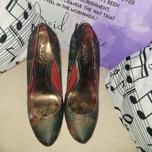 Aldo Pumps Abstract Mixed Print Satin Platform Heels Size 37 (US 6.5)
