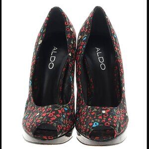 Aldo Red, Blue and Black Floral Poppy Peep Toe Heels 35 5