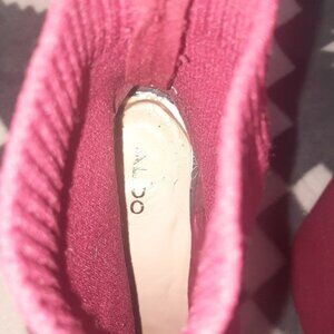 Aldo Red Pull On Sock 4 Inch Heel Booties Size 6.5. Soles have wear. Outer sole is in good condition. See all photos above. Questions and offers welcome.