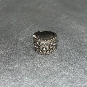 Intricate floral rhinestone design. Slight discoloration on underside of ring