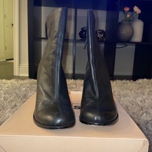 Black bootie with stylish, gold heel. Good condition. Worn only a handful of times.