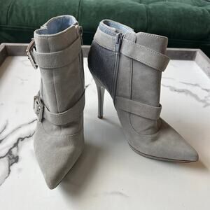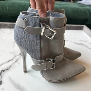tags: Aldo Rise, Preen collaboration, designer collab shoes, grey ankle boots, stiletto booties, pony hair, suede booties, buckle strap boots, statement heels, fall shoes, runway inspired
