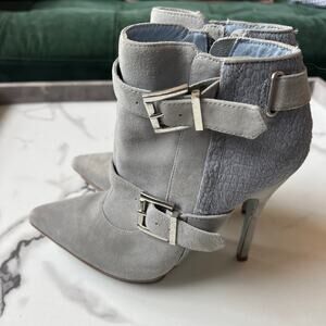 Aldo Rise x Preen Grey Light Blue Pony Hair Suede Buckle Booties Size 37