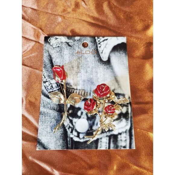 Aldo Rose Pins For Clothing Jewelry Red Gold Set of 2 S