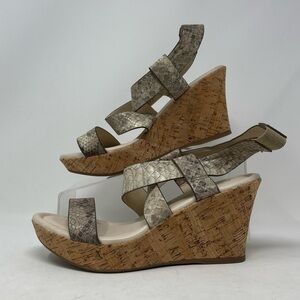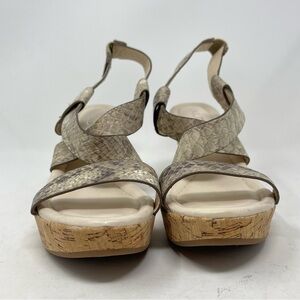 Aldo Sandals Womens 8.5 Cork Platform Shoes Open Toe Snakeskin Print Strappy