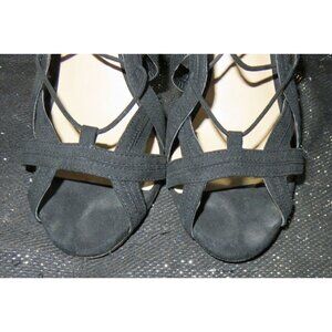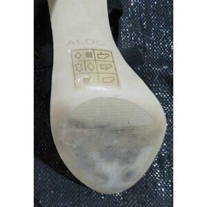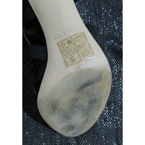 Aldo Shaylla Classic Black Vegan Suede Peep Toe Caged Back Zip Pumps sz 8