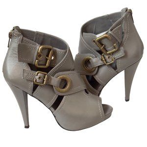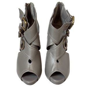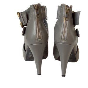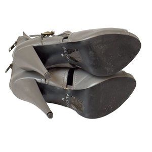 Aldo Shoes Gray Leather Buckle Peep Toe Platform High Heel Bootie Women Eu 38 US