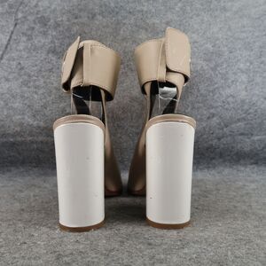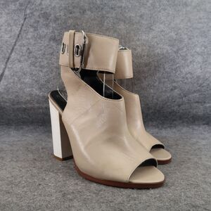 Used Aldo Shoes Womens 7.5 Pumps Ankle Wrap Buckle Bootie Peep Toe Leather Block Heel