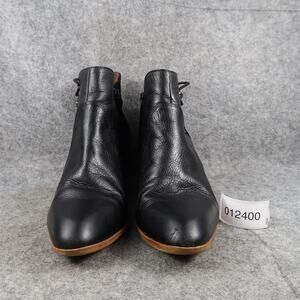Used Aldo Shoes Womens 9 Ankle Boots Black Leather Bootis Block Heel Zip Almond Toe
