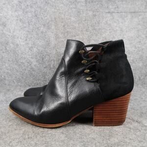 Aldo Shoes Womens 9 Ankle Boots Black Leather Bootis Block Heel Zip Almond Toe