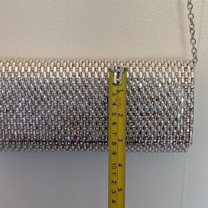 EUC Elegant silver clutch with sparkling crystals. Ideal for evening events. Features a sleek chain strap.