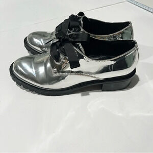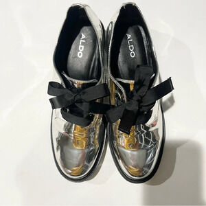 Aldo Silver Metallic Lace Up Oxford Deluca size 6.5 woman’s grunchy holiday look